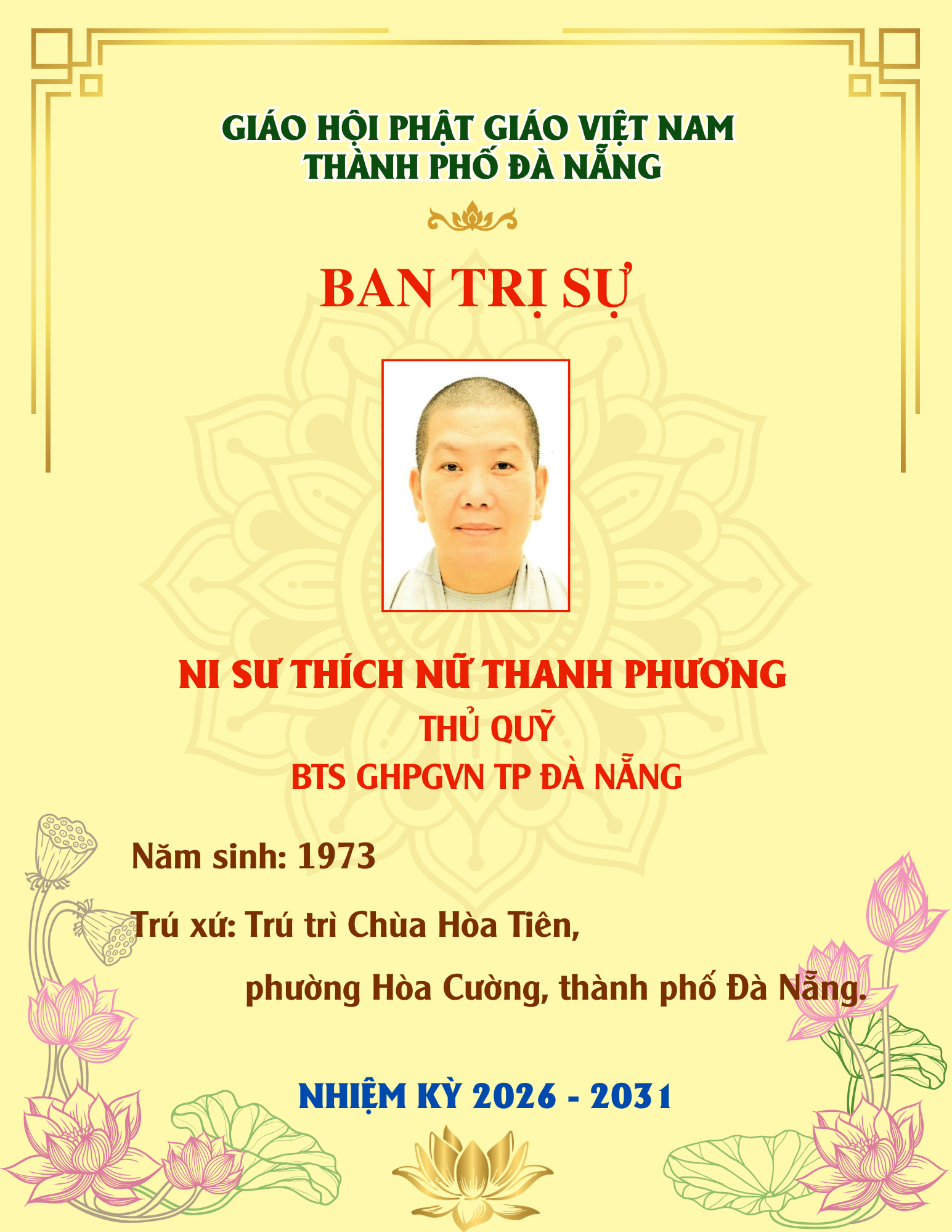 Danh sách và chức danh Ban Thường trực Ban Trị sự GHPGVN TP. Đà Nẵng, nhiệm kỳ 2026-2031