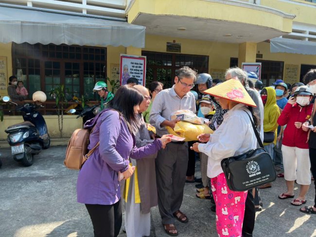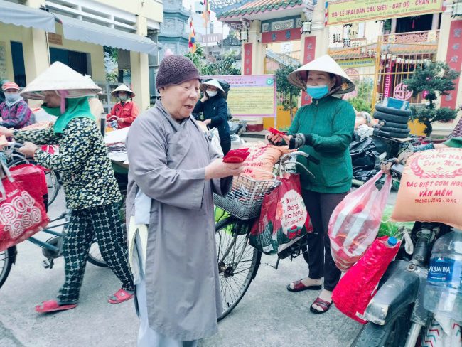 Sau lời thăm hỏi, động viên của Ni trưởng viện chủ, các phần quà đã được trao đến bà con. 100 suất quà đã được trao cho hội người khiếm thị Quận Hải châu, 100 phần quà cho bệnh nhân đang điều trị tại bệnh viện Da Liễu thành phố Đà Nẵng và 20 suất quà giúp đỡ người ve chai nghèo khó ( quà gồm 10kg gạo, bánh hộp, sữa lon , bì thư). Tổng kinh phí là 50 triệu đồng.