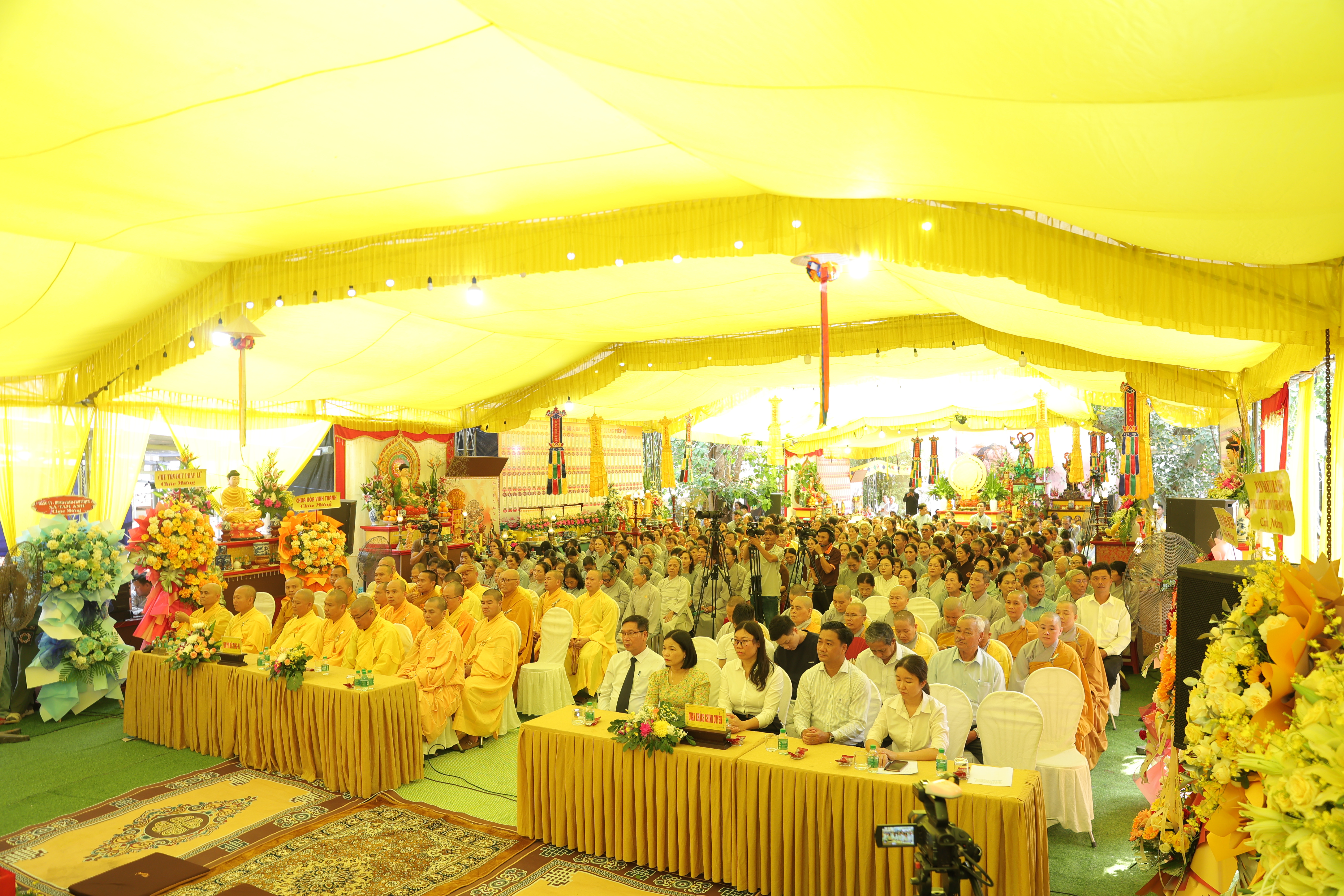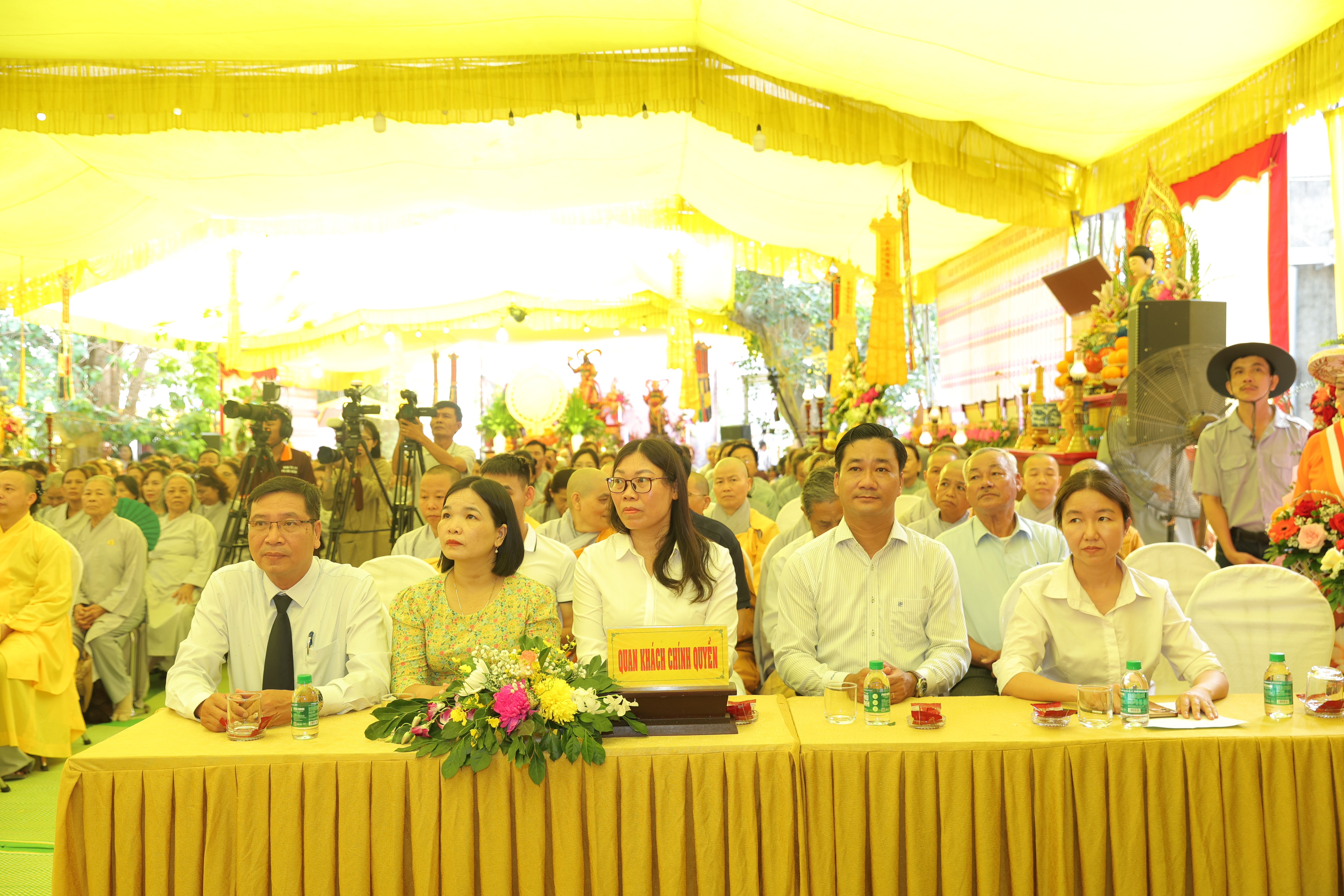 Về phía chính quyền có: ông Mai Quang Vĩnh – Phó Giám đốc Sở Dân tộc và Tôn giáo; bà Huỳnh Thị Hồng Kiều – Phó Chủ tịch UBND xã Tam Anh; ông Dương Văn Bảo – Chủ tịch Ủy ban MTTQVN xã Tam Anh; đại diện các cấp lãnh đạo địa phương; cùng các ban ngành, đoàn thể, cùng đông đảo Phật tử, đạo hữu và các nhà hảo tâm gần xa.