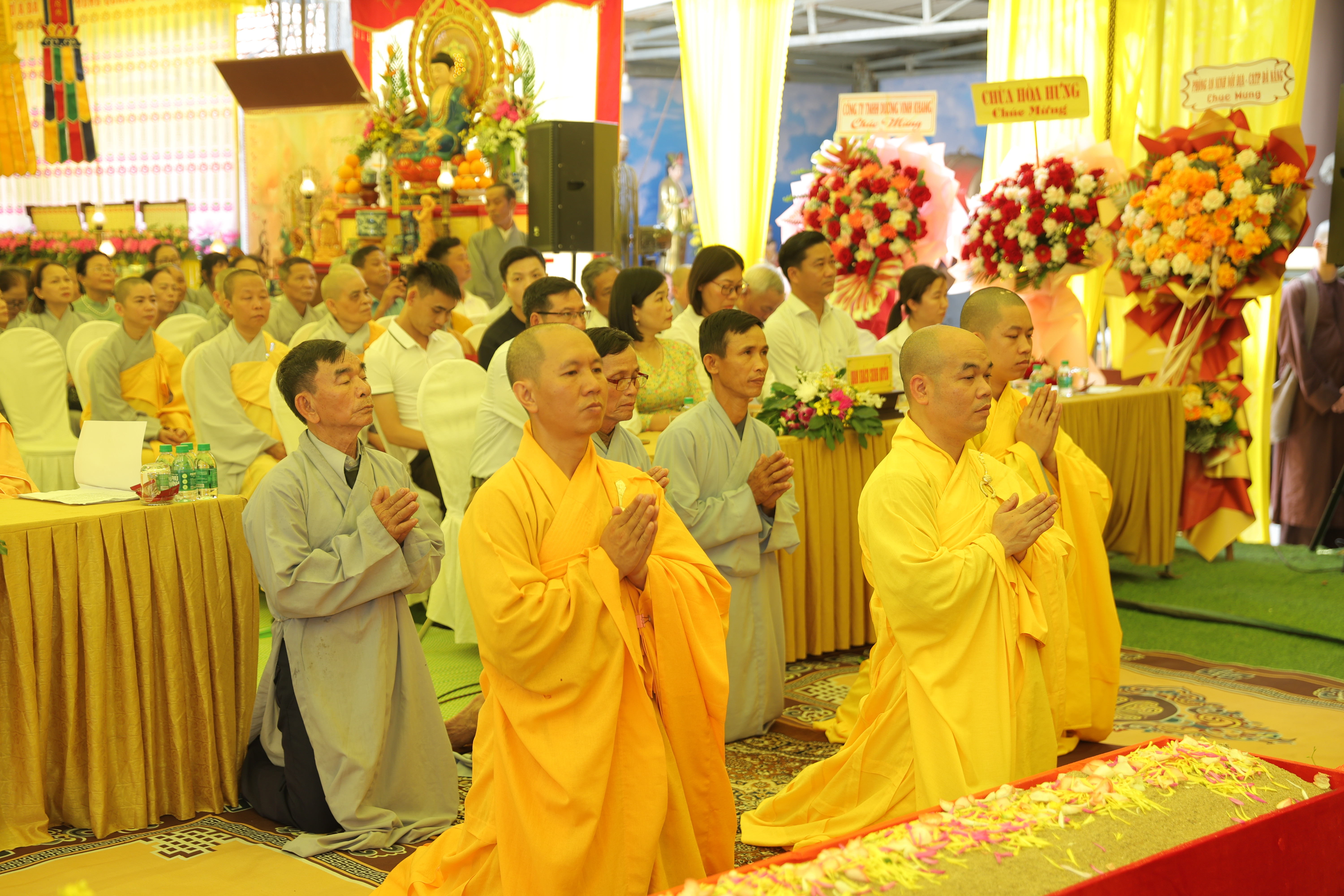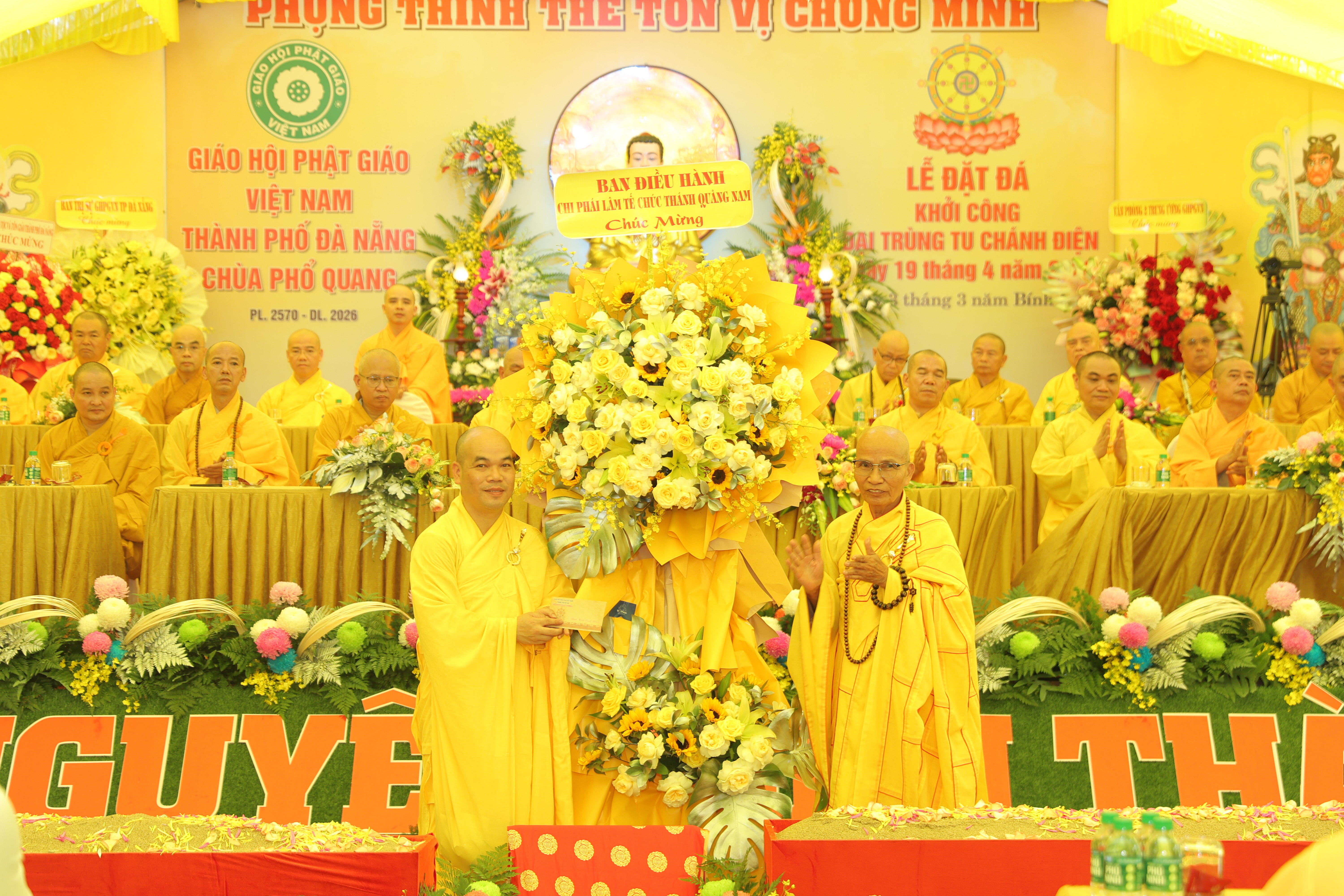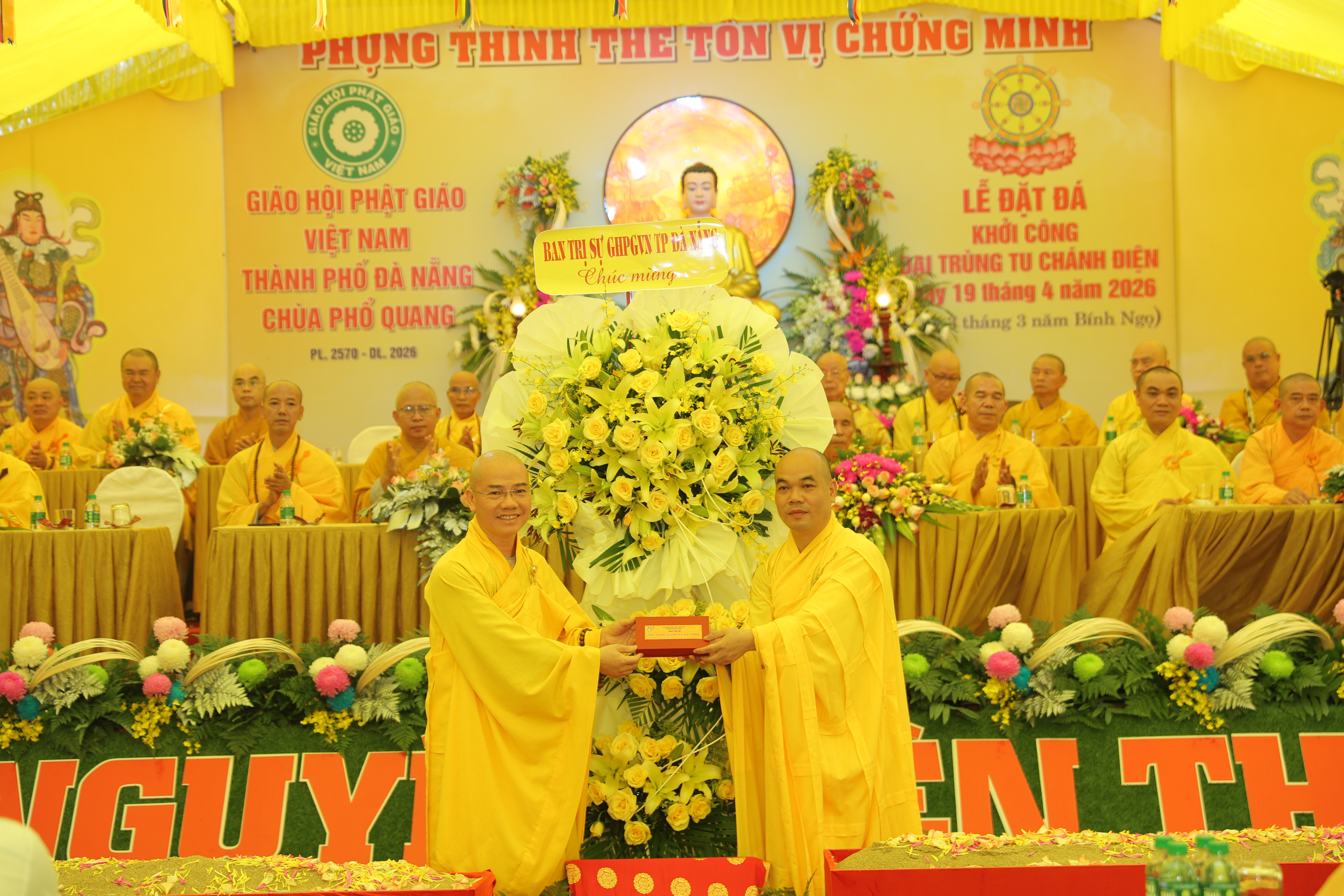 Trong không khí hân hoan, Đại đức Trụ trì chùa Phổ Quang nhận được nhiều lẵng hoa chúc mừng từ Văn phòng II Trung ương GHPGVN, Ban Trị sự PG TP.Đà Nẵng, lãnh đạo các cấp chính quyền: