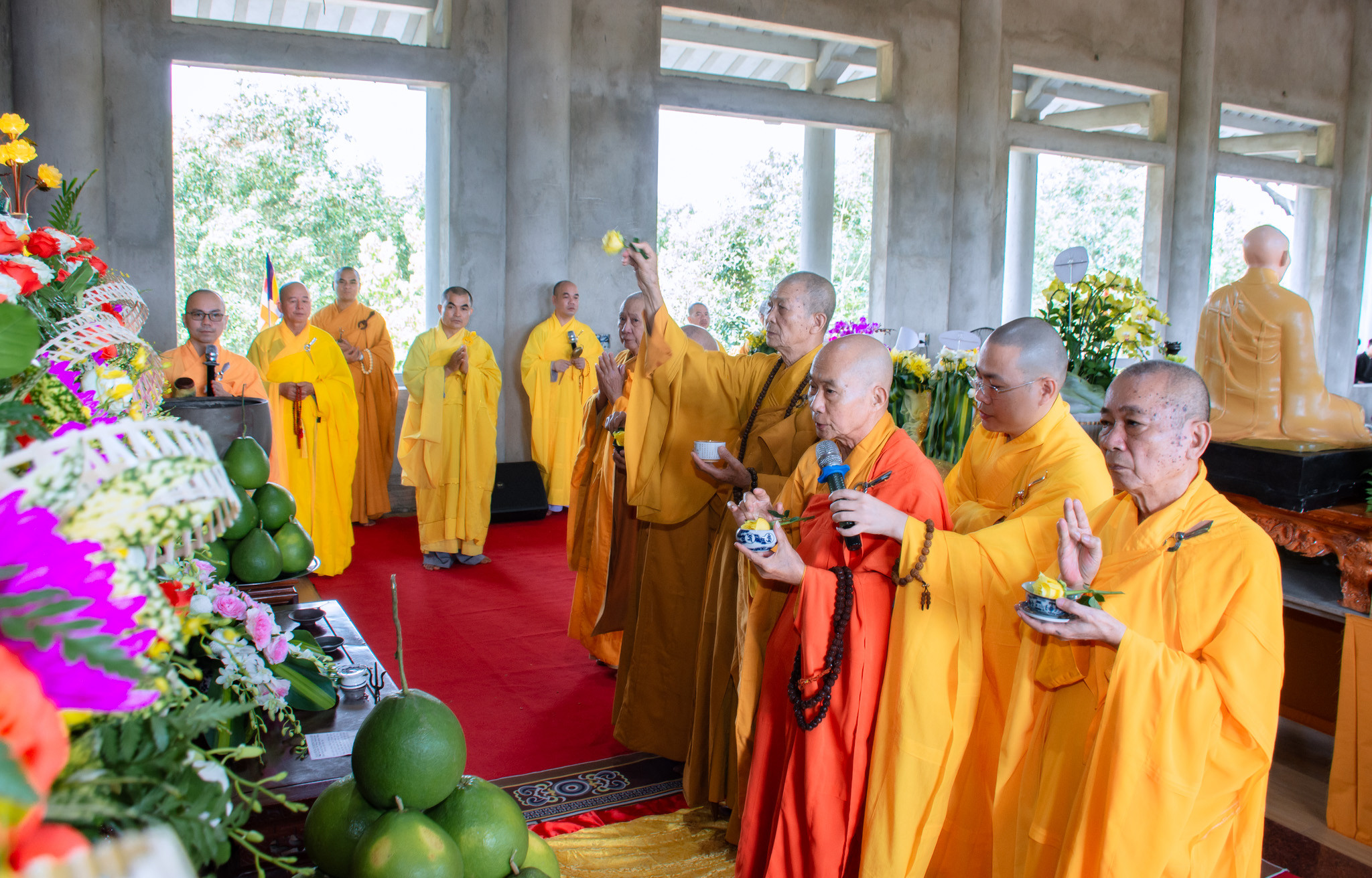Tại buổi lễ, chư vị giáo phẩm đã niêm hương, đảnh lễ Tam bảo, cử hành nghi thức sái tịnh an vị tôn tượng Đức Phật Bổn Sư tọa thiền trên tòa sen được đúc bằng đồng đỏ, nặng 1,5 tấn, cao 2,9m, được chạm trổ hoa văn, do nhóm nghệ nhân cơ sở đúc đồng tại TP.Huế chế tác.