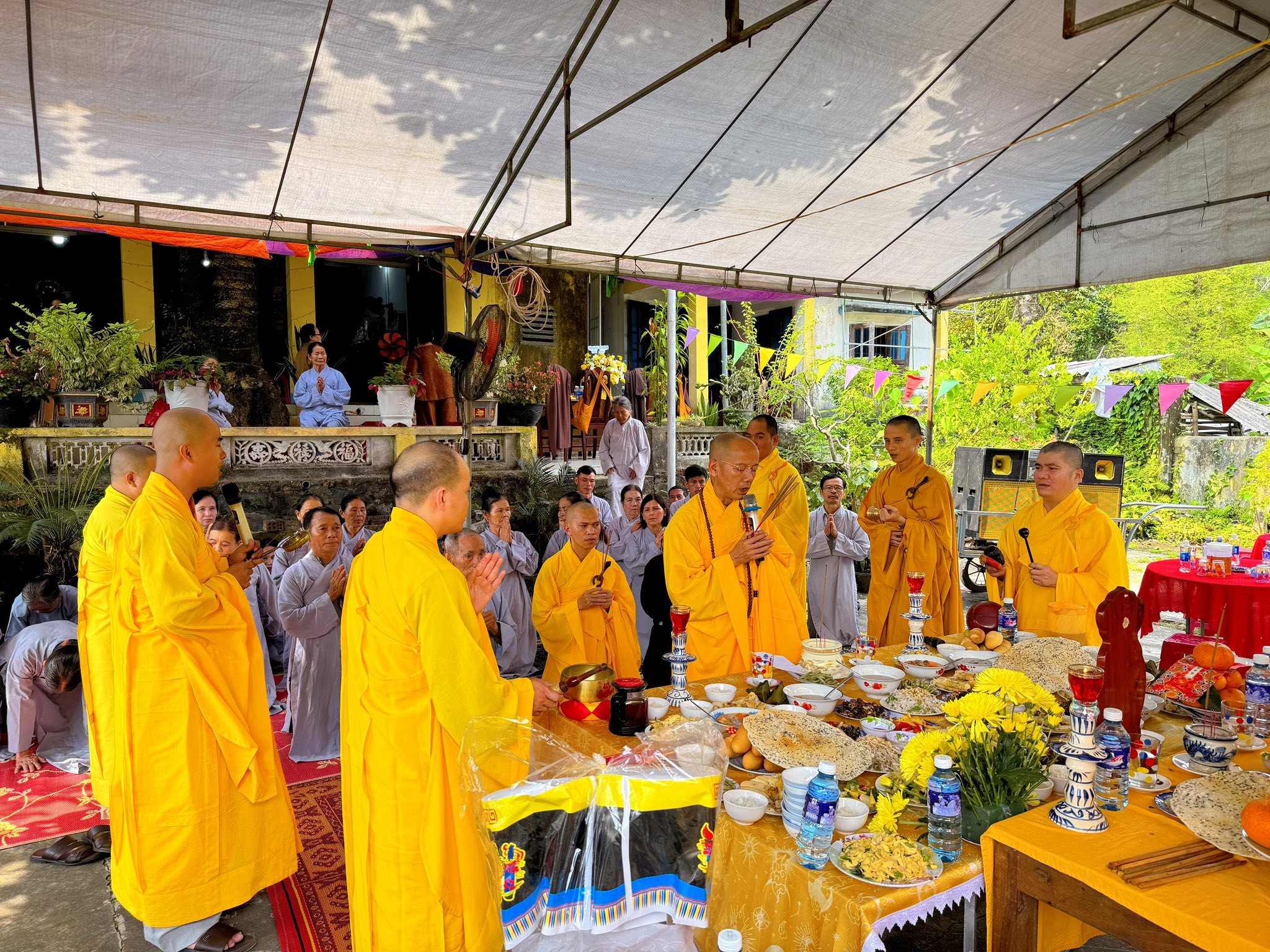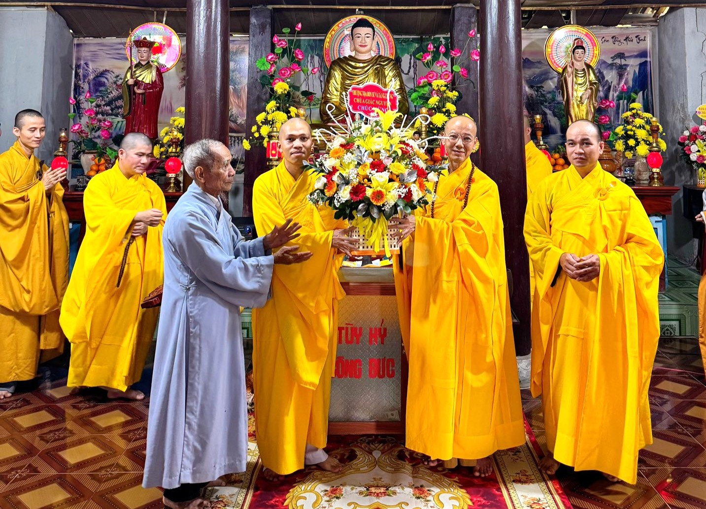 Dịp này, Ban Tổ chức cũng đón nhận nhiều lẵng hoa và phần quà chúc mừng từ chư tôn đức và các cấp chính quyền. Sau lễ chính thức, chư tôn đức đã cử hành nghi thức cúng ngọ, cầu quốc thái dân an.