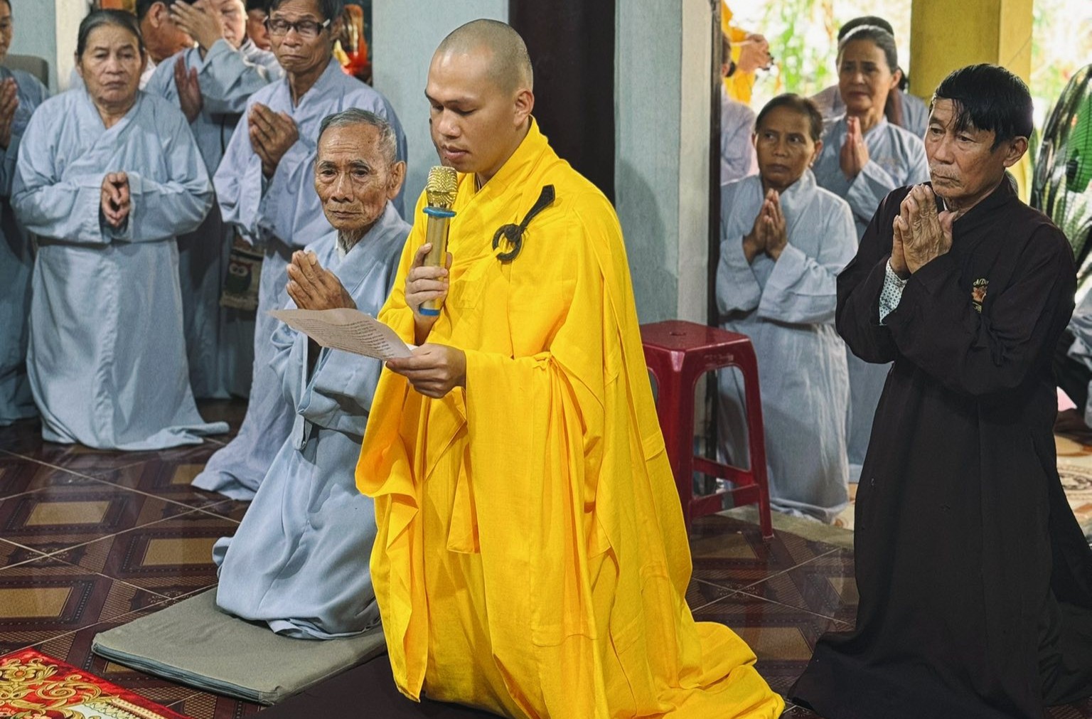 Trong không khí thiêng liêng và thắm tình đạo vị, chư tôn đức đã thành kính đảnh lễ, cử hành các nghi thức thiền môn truyền thống, dâng hương bái Phật và chư vị Tổ sư.
