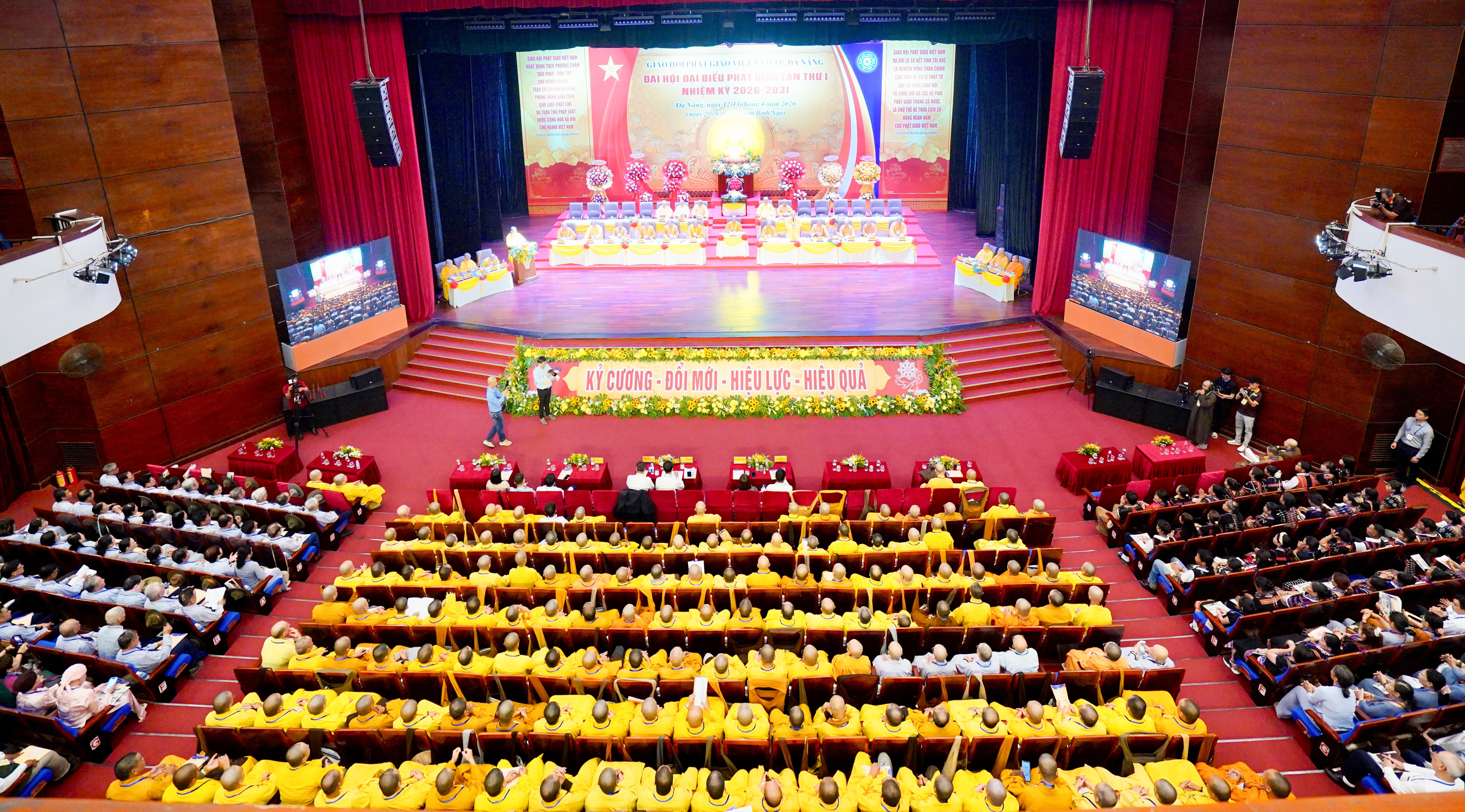 Chiều 12-4-2026 (nhằm ngày 25-2 năm Bính Ngọ), tại Hội trường Nhà hát Trưng Vương (quận Hải Châu, TP. Đà Nẵng), Ban Trị sự GHPGVN TP. Đà Nẵng đã long trọng tổ chức phiên làm việc thứ nhất của Đại hội đại biểu Phật giáo thành phố lần thứ I, nhiệm kỳ 2026–2031.